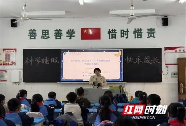 在蘋洲小学,该院专家以“科学睡眠,快乐成长——关爱睡眠健康,共建阳光校园”为题,用“熬夜的小怪兽”“大脑充电”等生动比喻,向小学生们讲解了睡眠对身体发育、记忆力提升和情绪调节的重要作用。现场互动热烈,孩子们在轻松愉快的氛围中学习了“478呼吸法”等实用助眠技巧。